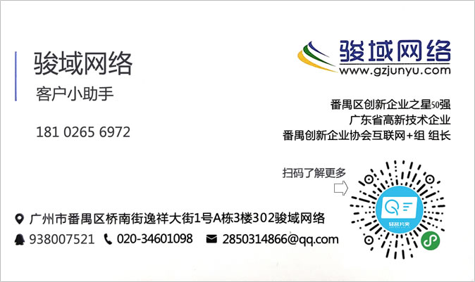 廣州駿域網(wǎng)絡科技有限公司成立于2005年,是一支由眾多具有多年實踐經(jīng)驗的專業(yè)人士組成的高新技術團隊,專為企業(yè)提供網(wǎng)站建設、全網(wǎng)營銷、郵箱等服務,我們擁有嚴謹?shù)某绦蜷_發(fā)人員、專業(yè)的美工設計、隨時為您效勞的售后服務人員,團隊人數(shù)達一百多人。目前我們已經(jīng)榮幸的為廣州眾多知名企業(yè)提供了包括網(wǎng)站建設、手機網(wǎng)站、小程序、企業(yè)軟件開發(fā)等多種基于互聯(lián)網(wǎng)技術的服務。 通過長期積累,駿域網(wǎng)絡目前已經(jīng)擁有50000多家客戶。